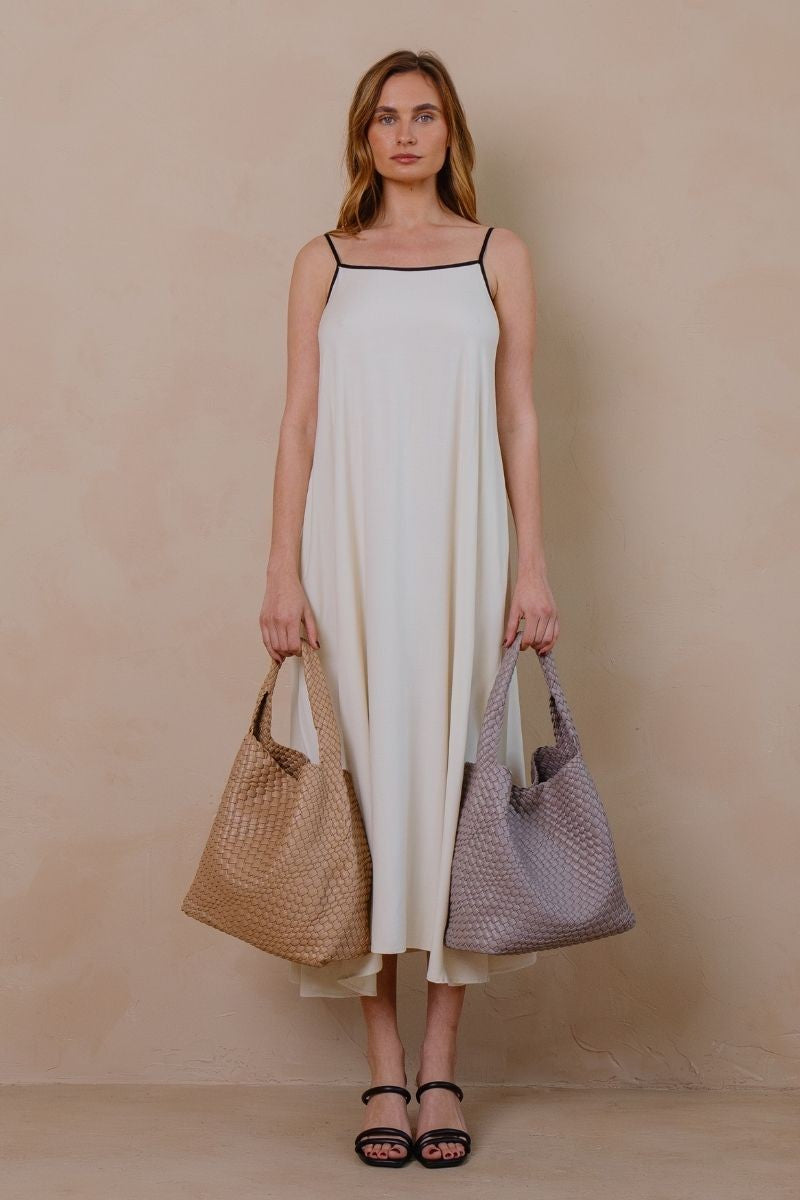 Woven from recycled vegan leather, the Johanna tote bag not only offers plenty of room for all your essential belongings but is also made of 40% post-consumer recycled polyester and 18% post-consumer recycled vegan leather. Making it chic and better for the environment.