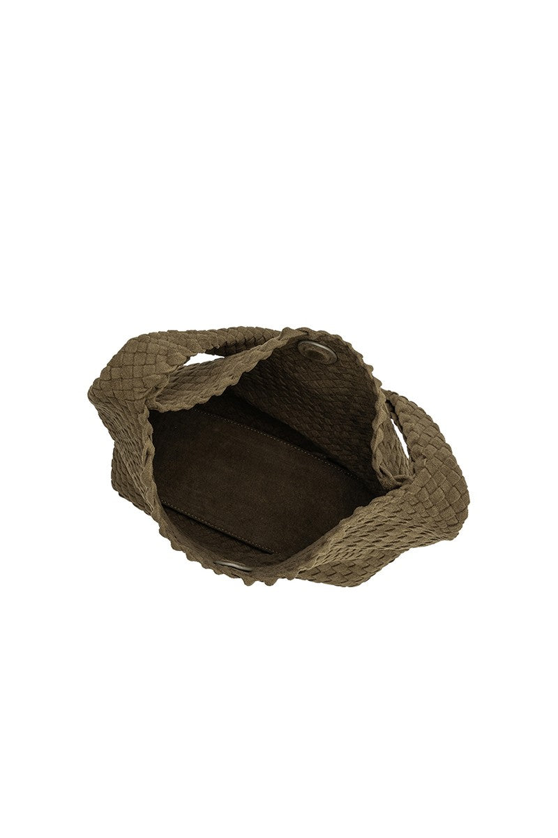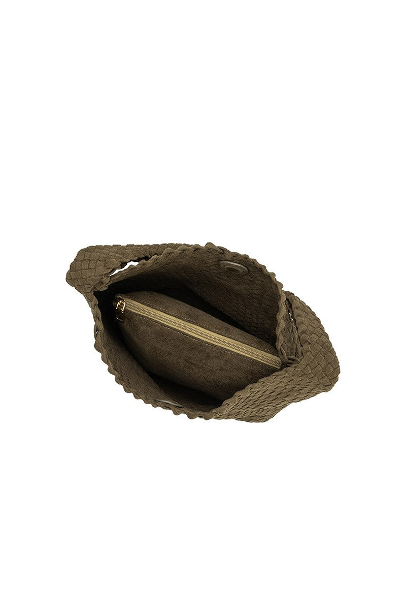 Woven from recycled vegan suede, the Johanna tote bag not only offers plenty of room for all your essential belongings but is also made of 40% post-consumer recycled polyester and 18% post-consumer recycled vegan leather. Making it chic and better for the environment.