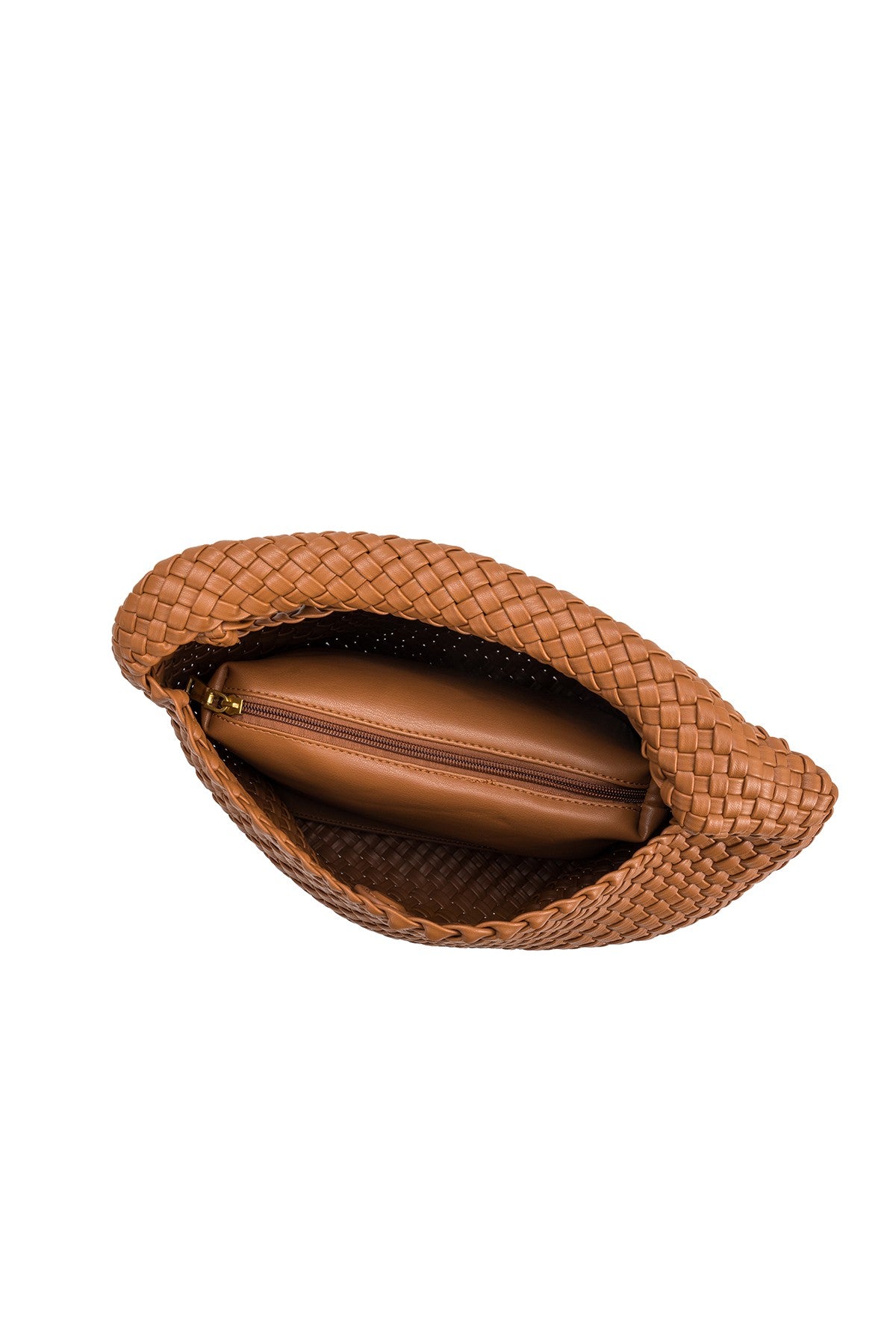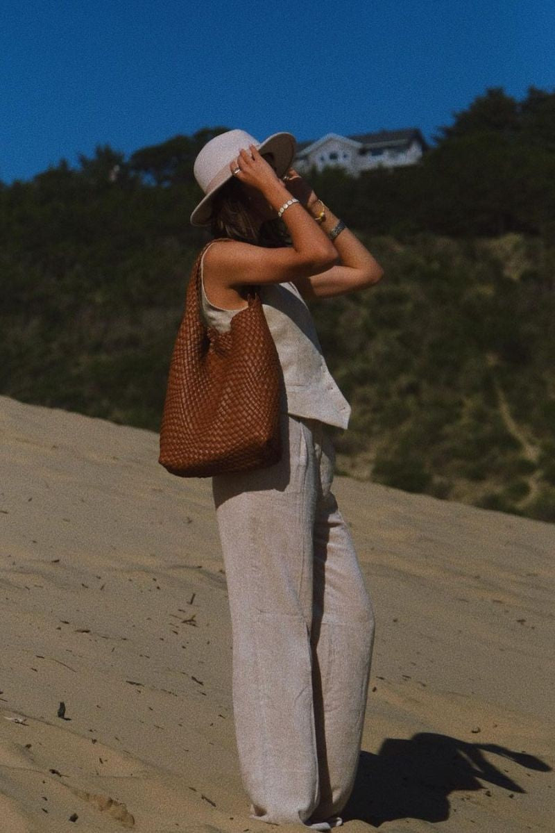 Woven from recycled vegan leather, the Johanna tote bag not only offers plenty of room for all your essential belongings but is also made of 40% post-consumer recycled polyester and 18% post-consumer recycled vegan leather. Making it chic and better for the environment.