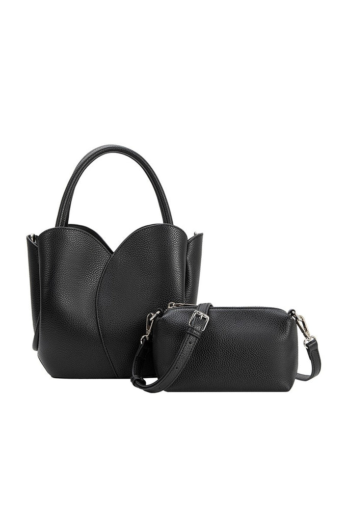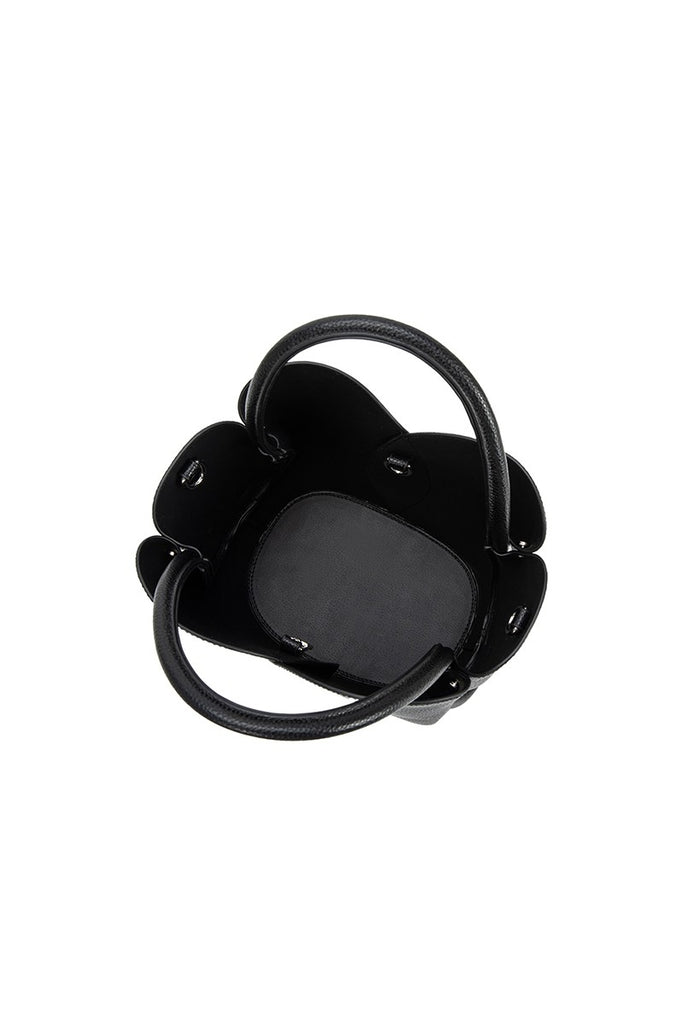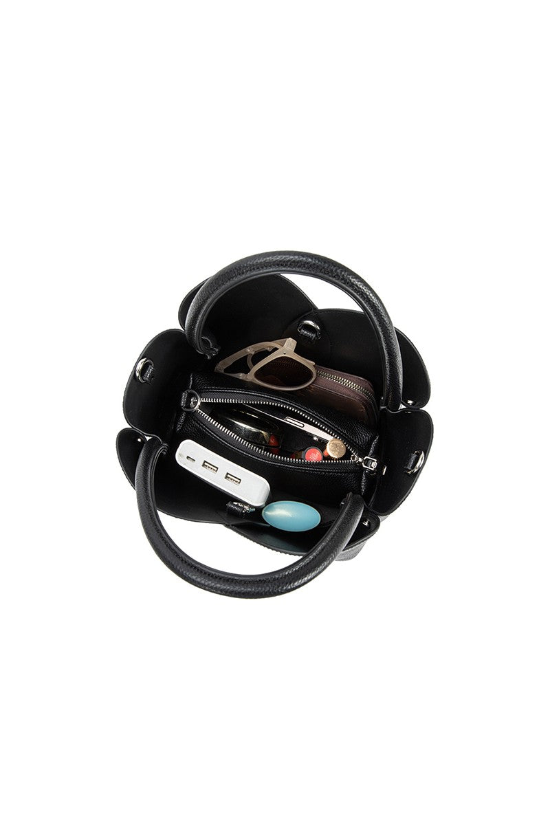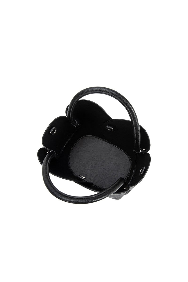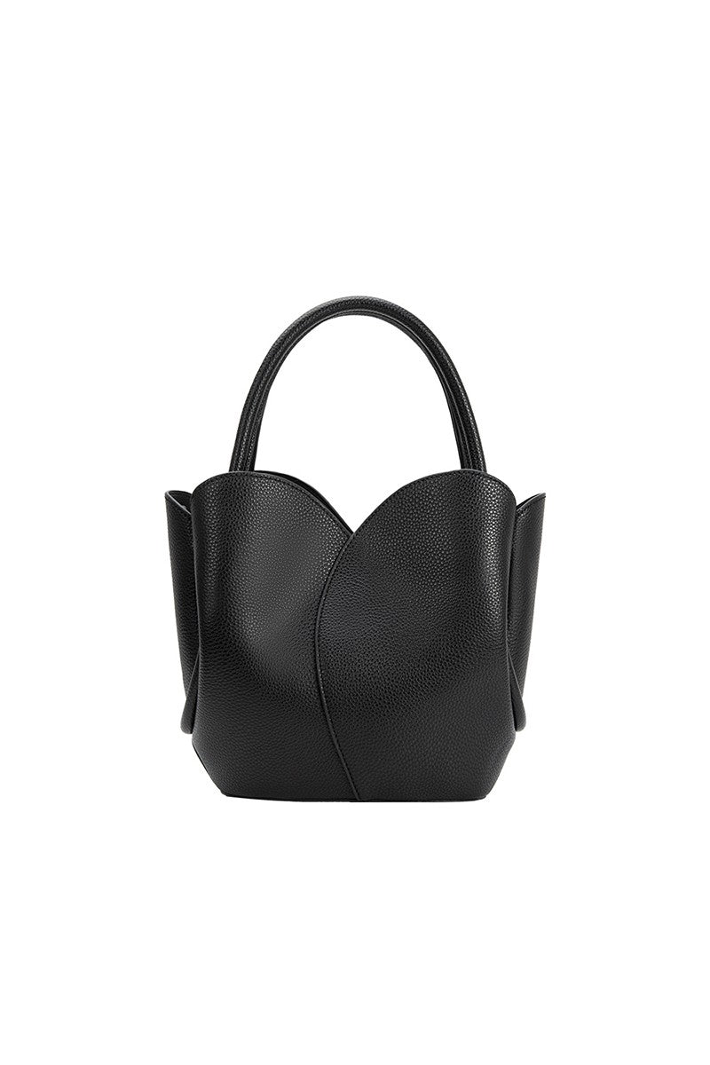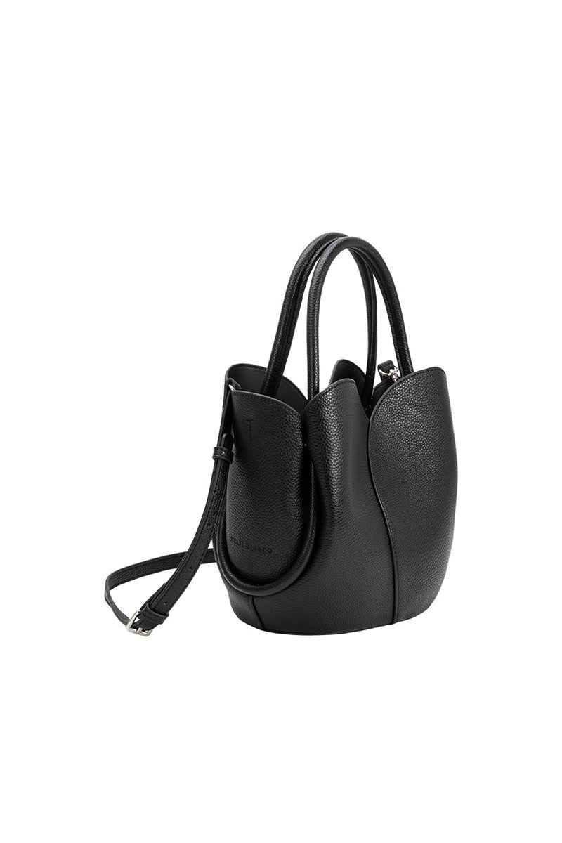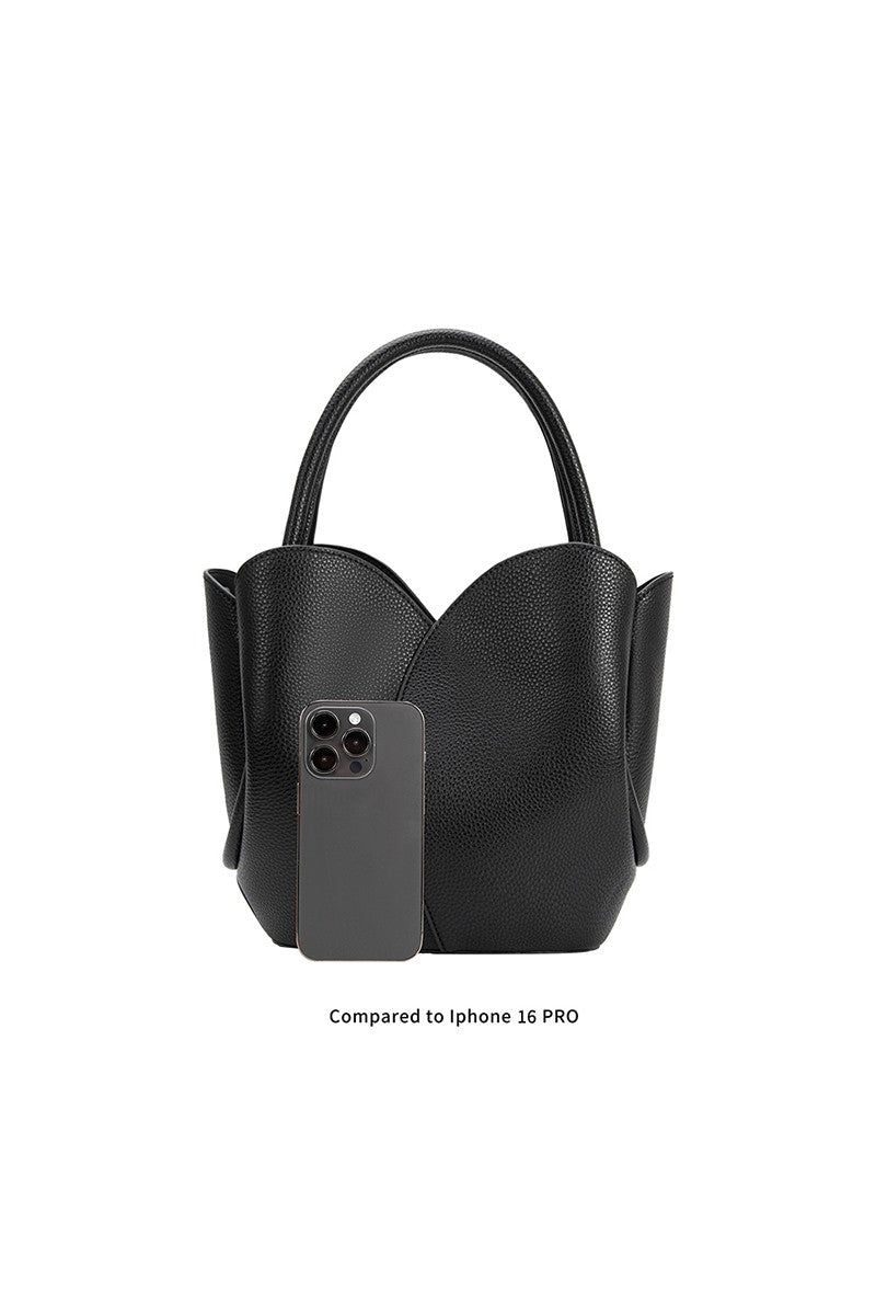 Shaped like a delicate tulip, this bag adds a touch of elegance to any outfit. Featuring a pebble leather texture, it can be used as a top handle or crossbody bag. The removable zip pouch inside also comes with a detachable strap for added functionality.