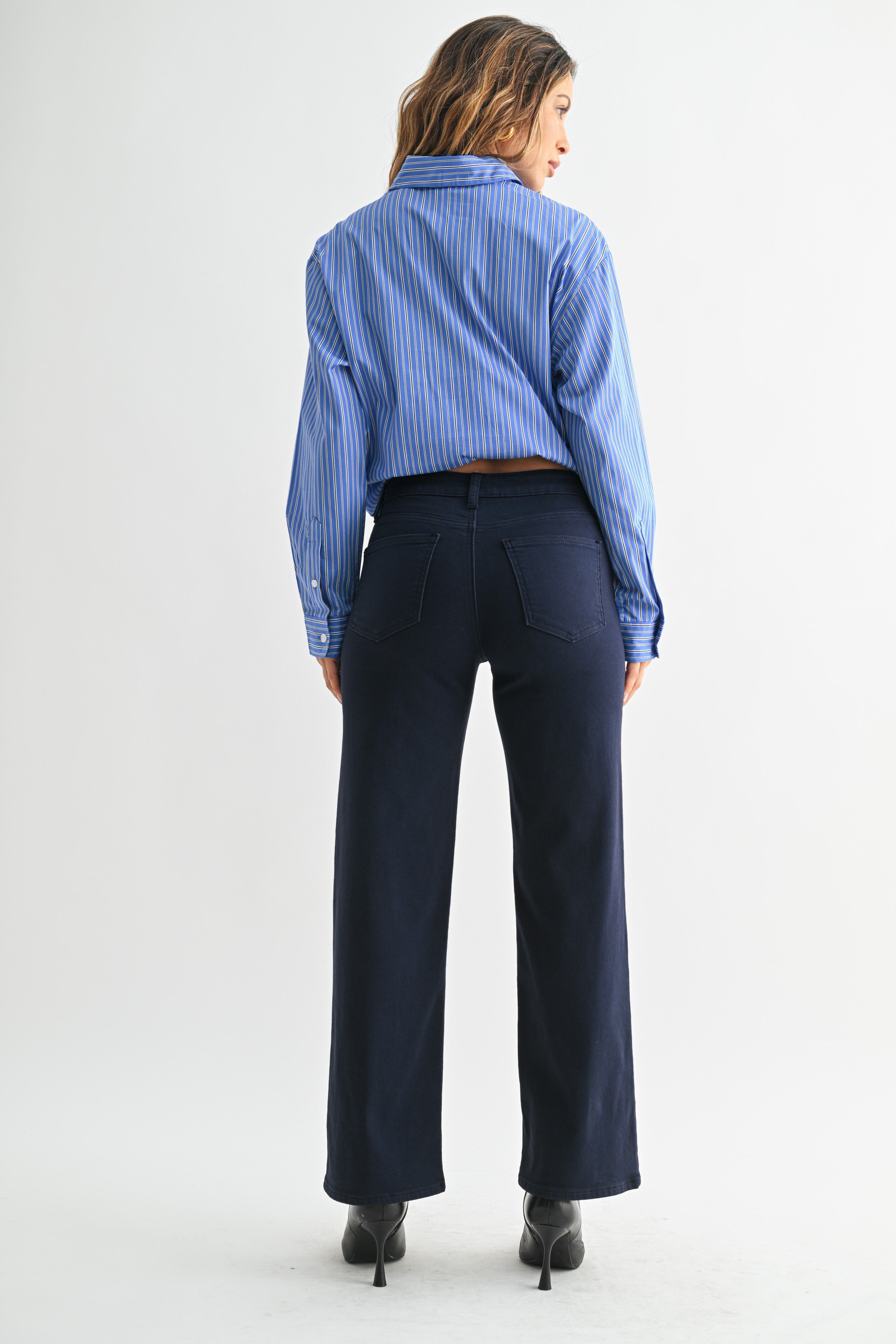 Sitting comfortably at the waist with a mid-rise fit, these jeans feature a relaxed, easygoing silhouette through the hips and thighs. Functional utility pockets lend a touch of practical style, while the deep navy wash offers a sleek, versatile alternative to classic denim.