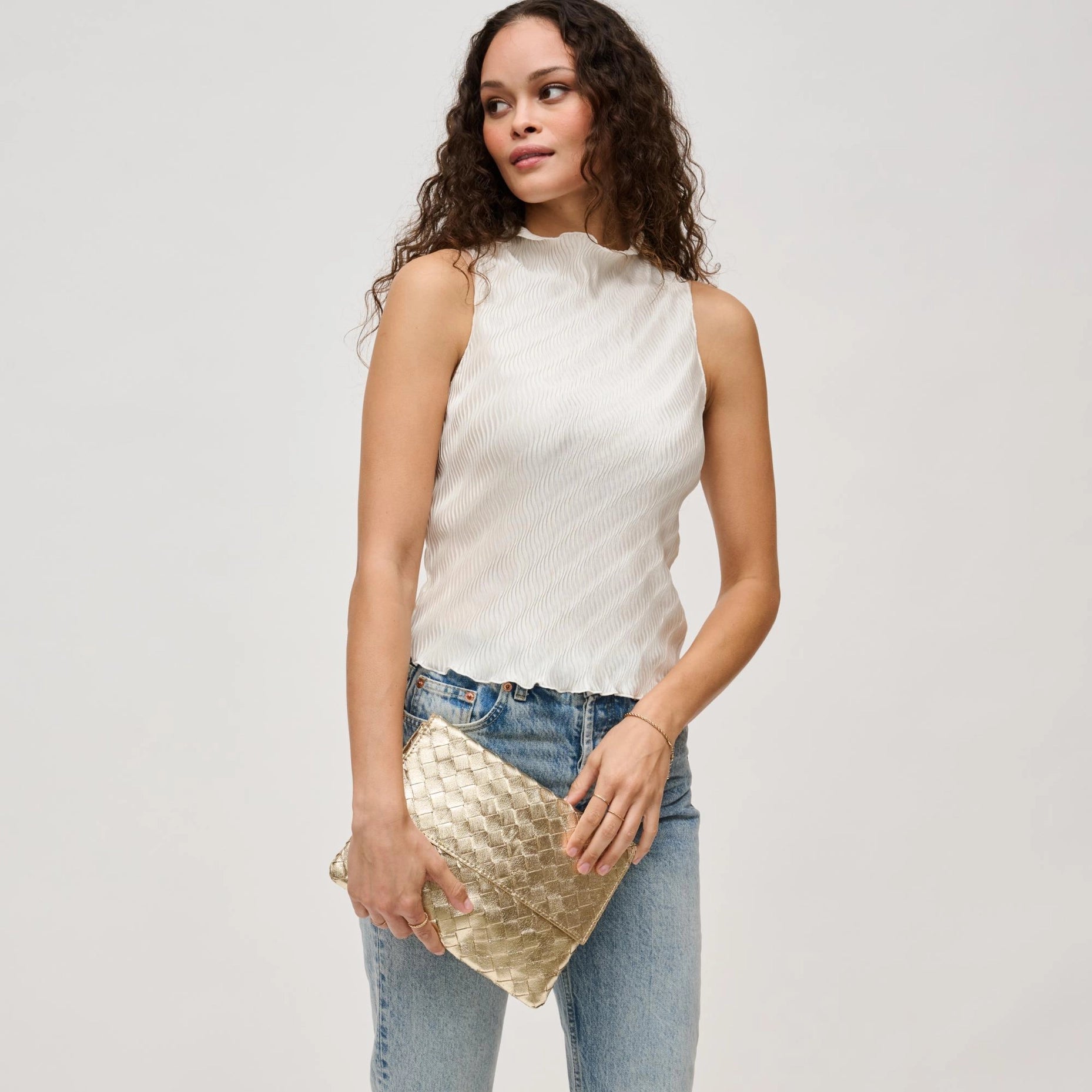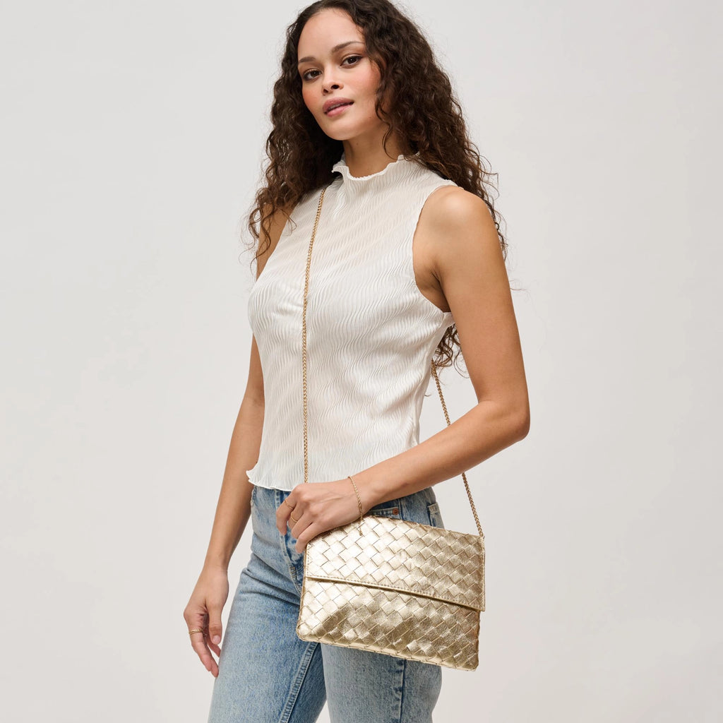 • Exterior Details: Woven Design, Envelope Shape, Detachable Chain Strap