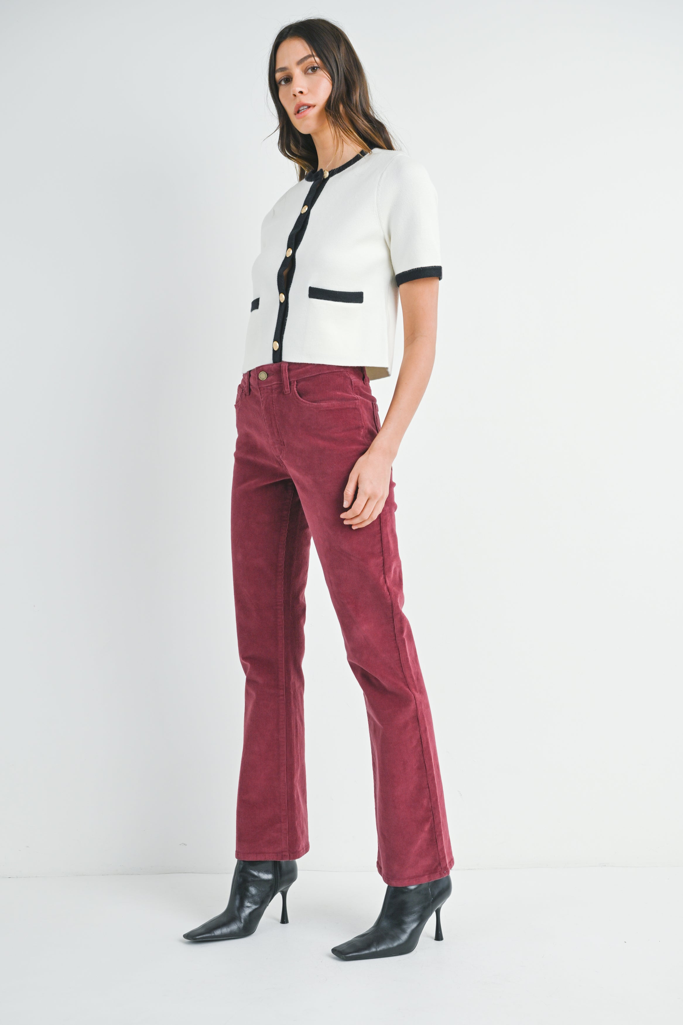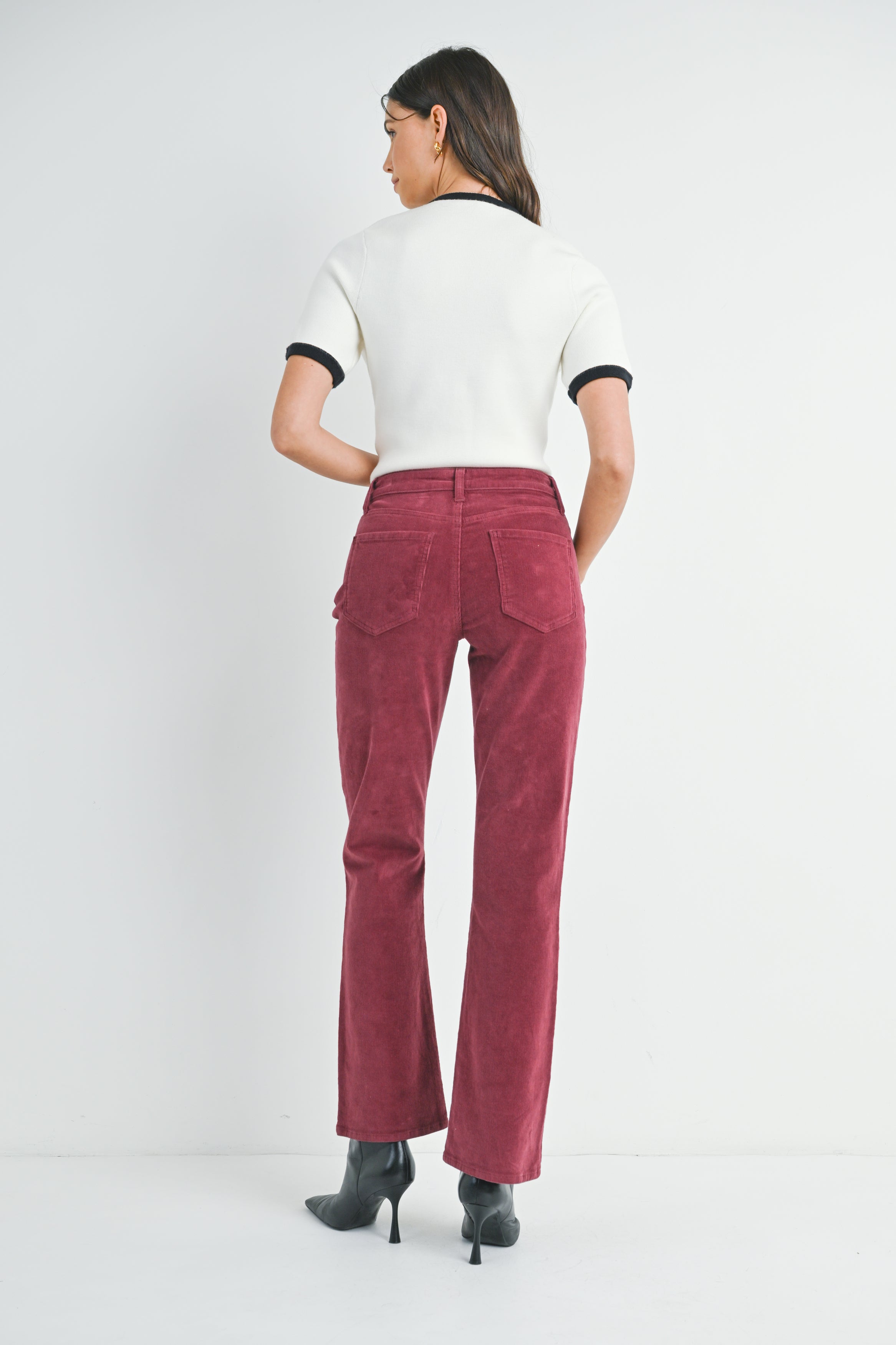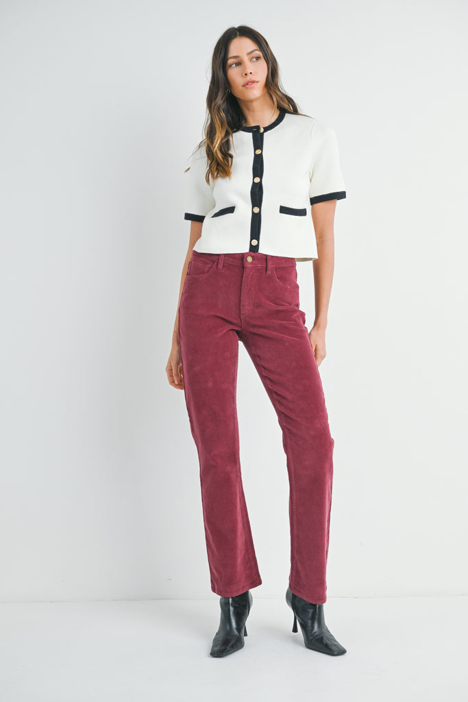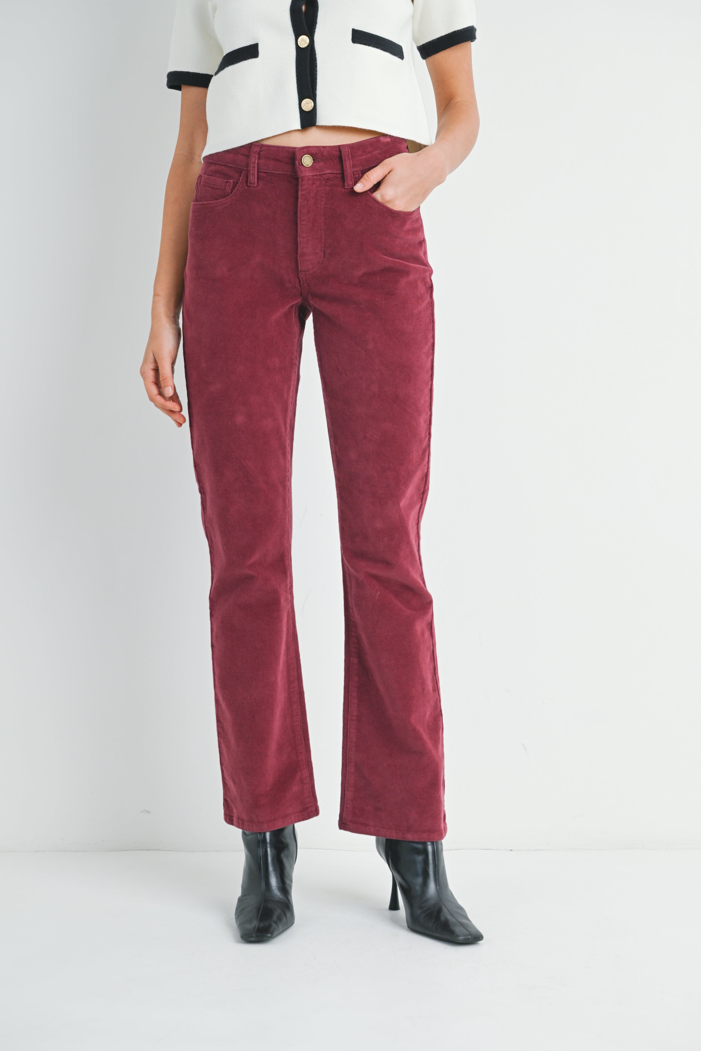 Features a chic high-rise waist and the perfect ankle length inseam that’s amazing for showing off your favorite flats and sandals. Made from luxuriously soft stretch corduroy, it offers smooth, all-day comfort. This versatile piece effortlessly pairs with everything in your wardrobe.